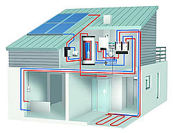 Thermische Solaranlagen können für die Erwärmung von Trinkwasser (Dusch- und Badewasser) sowie zur Wärmegewinnung für Raumheizung eingesetzt werden. Dabei wird der speziell beschichtete Absorber eines thermischen Kollektors durch die Sonnenenergie erhitzt. Durch die Röhren des Kollektors strömt eine Flüssigkeit, seltener auch ein Gas, das diese Wärme aufnimmt. Mittels einer Pumpe im Kreislauf wird das Wärmeträgermedium dann zu einem Speicher (häufig ist dies ein Warmwasserspeicher) oder zum Verbraucher gepumpt. |
